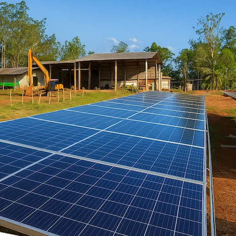 Projeto e instalação de sistema fotovoltaico de 60 kWp para atendimento da demanda elétrica da Fazenda Boi Gordo. O serviço incluiu estudo técnico, projeto elétrico, montagem das estruturas, instalação dos módulos e inversores, além do comissionamento e integração ao sistema elétrico existente. O sistema foi dimensionado para operação eficiente no ambiente rural, com foco em confiabilidade, segurança elétrica e redução dos custos de energia.